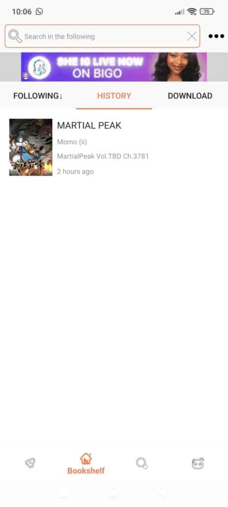 Na Estante, você pode organizar facilmente os mangás lidos, seguidos ou baixados.